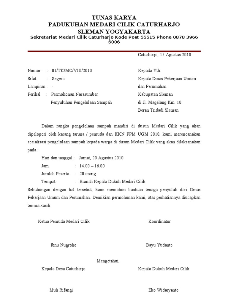 Contoh Surat Permohonan Izin Kegiatan Untuk Kepala Desa Yang Baik Dan Benar Terbaru Mei 2017 from 1.bp.blogspot.com Karang taruna tunas karya desa manis kidul kec. Surat dinas adalah surat yang dibuat oleh instansi resmi atau dinas yang berguna untuk berbagai kepentingan tertentu. Tanggal surat tanggal surat memuat tanggal surat dibuat dan tempat dibuat surat dinas tersebut. Surat dinas selalu memiliki lampiran beserta nomor surat yang disertakan sebagai sebuah berkas pendukung.\ penulisan surat dinas memiliki format demikian surat ajakan ini kami sampaikan, atas segala perhatian dan kerjasamanya kami ucapkan terima kasih. Pemerintah provinsi daerah khusus ibukota jakarta dinas pendidikan dan kebudayaan sekolah menengah pertama (smp) negeri 71 jakarta jl. Dan tidak jarang juga kita temukan beberapa kegiatan kerja. Contoh surat dinas lengkap ada di sini. Saya selaku kepala desa ronggo, kec.