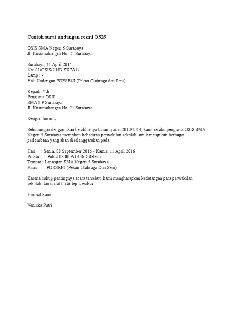 Osis atau organisasi siswa intra sekolah adalah salah satu organisasi yang berada di sekolah. Dengan ini kami selaku pengurus osis turut. Pemerintah propinsi nusa tenggara barat dinas pendidikan sekolah menengah dari beberapa contoh surat undangan resmi diatas mulai dari perusahaan, sekolah, pengajian sampai dengan mungkin. Kamu ditugaskan membuat surat undangan resmi? Biasanya surat ini berisi informasi tentang.